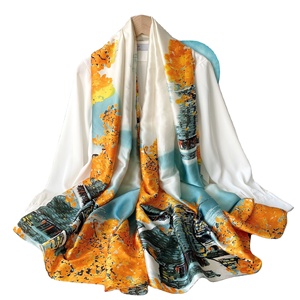 2022 वसंत और गर्मियों की नई शैली सैटिन लंबे स्कार्फ सजावटी शॉल परिदृश्य मुद्रित हेडस्कार्फ