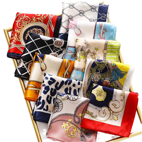 Atacado 100% Cetim De Seda Lenço Quadrado 50cm Longa Planície com Impresso Estilo Vintage Lenço De Seda para o Verão e Inverno