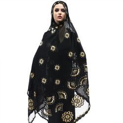 Lenço de Cor Sólida com Bordado e Strass, Xale Saudita Hijab Frc 2024 Moda Feminina Lenços Muçulmanos Hijabs Xale de Musselina