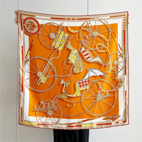 High-End 70*70cm Soft Satin Polyester Silk Square Scarf Lady's Summer Headband Foulard Bag Ribbon Acessório confortável das Mulheres